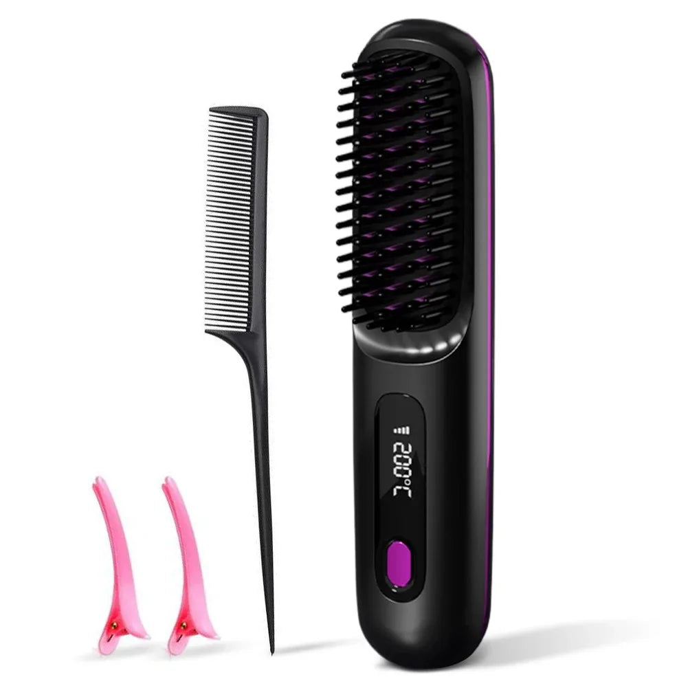 A escova alisadora sem fio MOJOYCE foi desenvolvida para quem busca cabelos alinhados, brilhantes e sem frizz de forma rápida e prática. Com tecnologia de íons negativos e aquecimento cerâmico, ela desliza facilmente pelos fios, oferecendo um acabamento suave e natural sem danificar o cabelo.