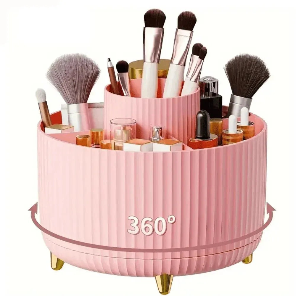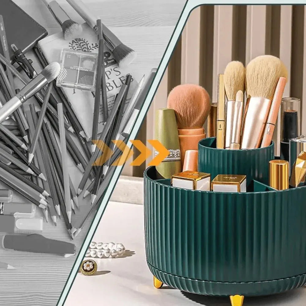 Organizador de Pincéis de Maquiagem com Rotação 360° – Elegância, Praticidade e Design Moderno.