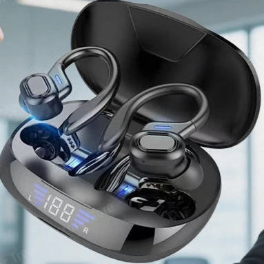 Os Fones de Ouvido Sem Fio TOBOSE oferecem uma experiência sonora premium, unindo conforto, tecnologia e resistência em um design moderno com ganchos auriculares ergonômicos.