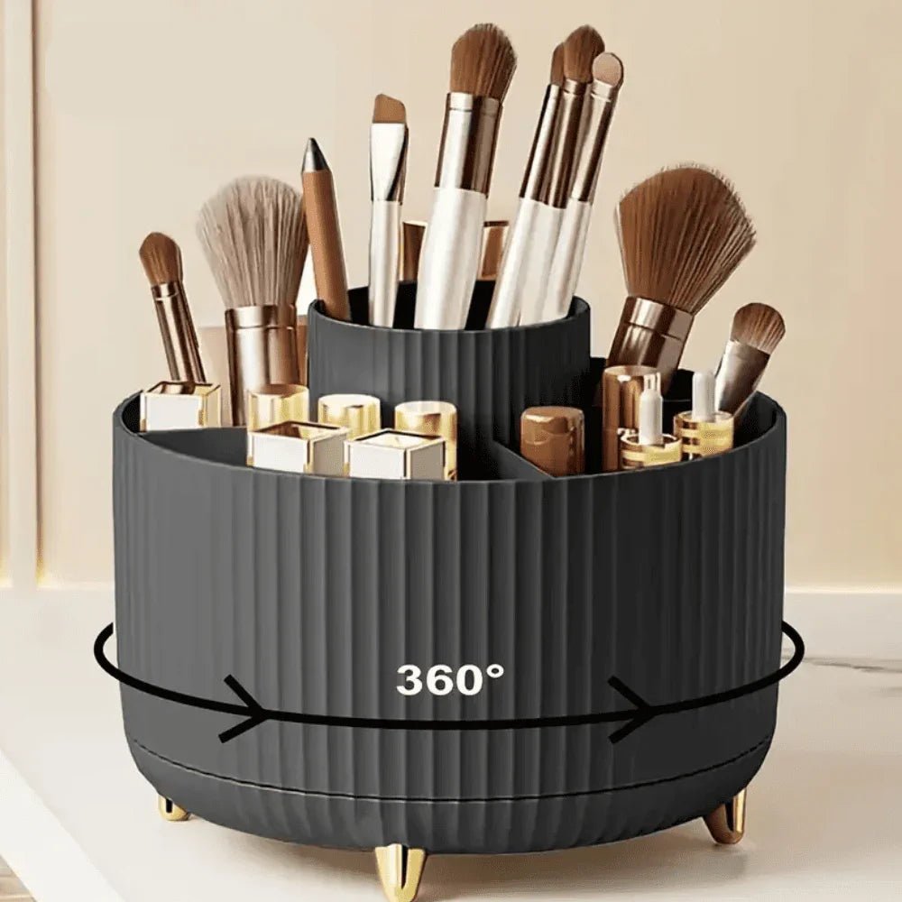 Organizador de Pincéis de Maquiagem com Rotação 360° – Elegância, Praticidade e Design Moderno.
